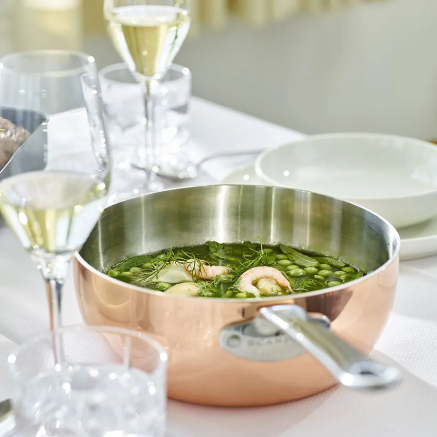 Vaskes for hånd. For å opprettholde den speilpolerte finishen anbefales bruk av rustfritt stål/kobberpolish