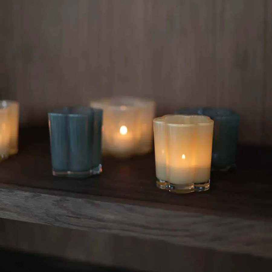 Denne blomsterformede lyslykten i strålende gulfarget glass gir et varmt og solfylt preg til hjemmet ditt. Når lyset tennes, skaper den et vakkert skinn som lyser opp rommet med en lun atmosfære. Den unike formen tilfører et dekorativt element, enten du bruker den alene eller i kombinasjon med andre lykter. Perfekt for å gi en følelse av lys og glede på mørke kvelder. Laget av slitesterkt glass som reflekterer lyset på en elegant måte.
