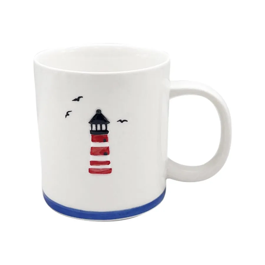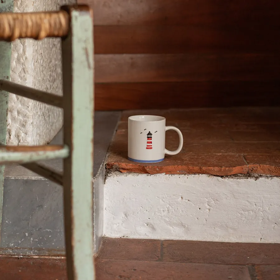 Start dagen med frisk sjøbris – eller i det minste følelsen av det! Dette maritime kruset på 45 cl prydes av et klassisk rødt og hvitt fyrtårn med flyvende måker i bakgrunnen. Den hvite bakgrunnen og blå kanten nederst gir en tydelig, maritim stil som passer perfekt hjemme, på hytta eller i båten.Med god kapasitet rommer kruset både morgenkaffen, teen eller kakaoen du nyter etter en lang dag ute. Den robuste hanken gir et godt grep, og den enkle formen gjør det komfortabelt å bruke – hver dag.Fyrtårnmotivet gjør kruset til en dekorativ del av kjøkkenhyllen og gir et snev av kystidyll til hverdagen. Kombiner det gjerne med flere maritimt inspirerte krus for et komplett uttrykk.